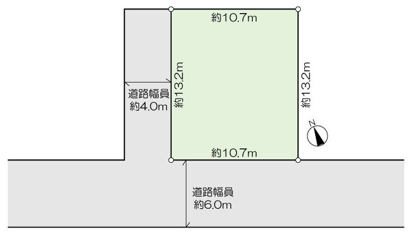 南西側:幅員6.0m公道に10.7m接道 |