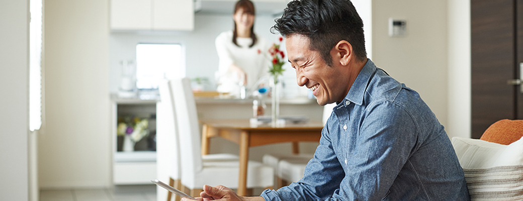 多忙な仕事なので「家で過ごす時間を大切にしたい」と思い、ちょっとグレードの高い賃貸マンションを探しました。ここは室内はもちろん、エントランスなどの共用部までホテルのようなデザインでスグに気に入りましたね。休日は妻と2人で、部屋でゆっくりする機会が増えました。