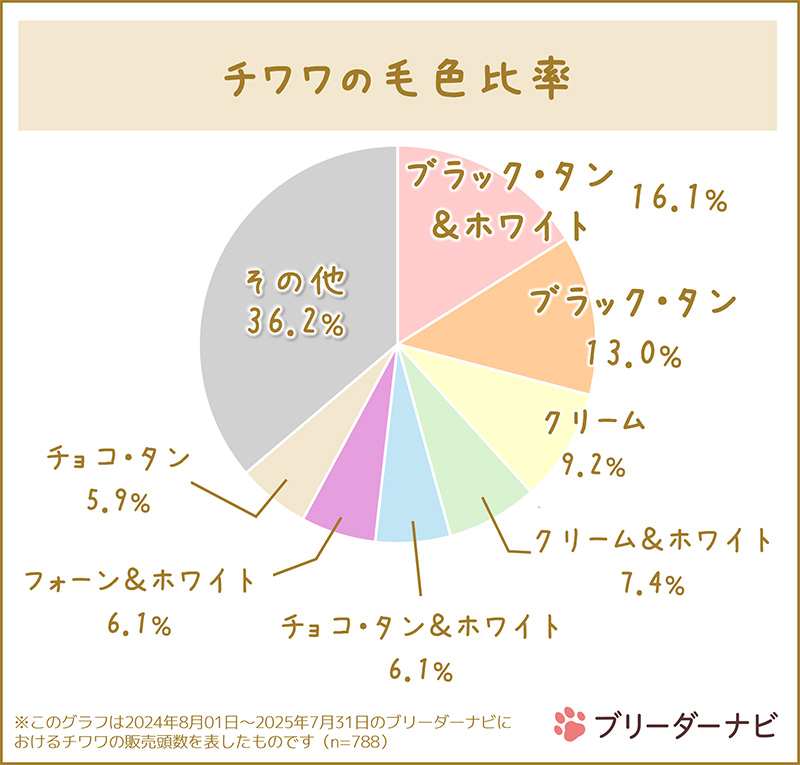 こちらは「ブリーダーナビ」で過去1年間に販売されたチワワの毛色データを分析したものです。